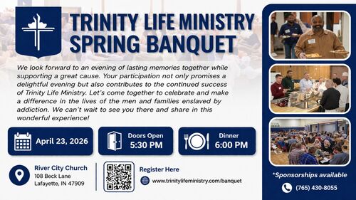 Doors open on April 23 @ 5:30 PM. Come and taste the food. Come and join those in addiction. Come and hear how men are being transformed, https://www.trinitylifeministry.com/events/banquet/.